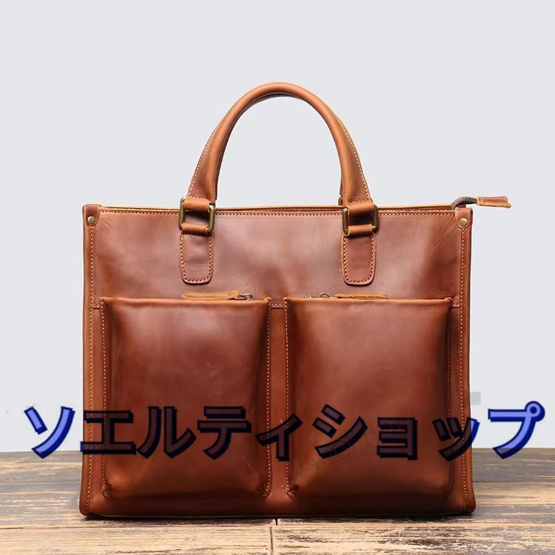 - 良い品質☆職人手作り 手染め ヌメ革 ハンドメイド メンズ 本革 ビジネスバッグ ブリーフケース 牛革 レザー 通勤鞄 手提げバッグ 出張