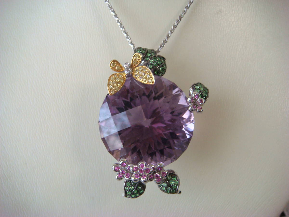 - ◎特大 アメシスト カラーサファイヤ ペンダント K18製 68カラット◎