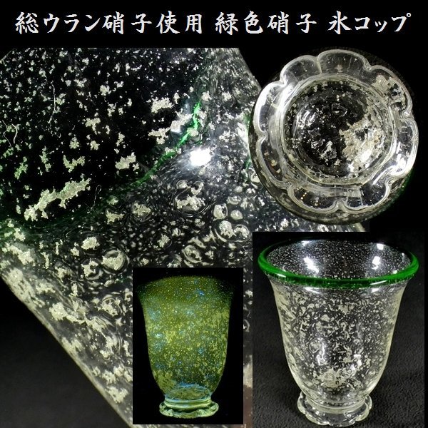 > 【 恵 #0877】 総ウラン硝子使用 アンティーク 緑色硝子 氷コップ デザートグラス① 検:鉢/古ガラス/氷コップ/色ガラス/硝子