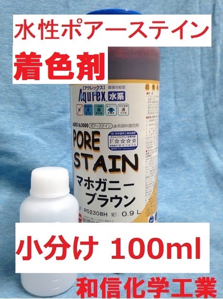 - 水性木材着色剤 ポアーステイン マホガニーブラウン 小分け 100ml 顔料系 和信化学工業