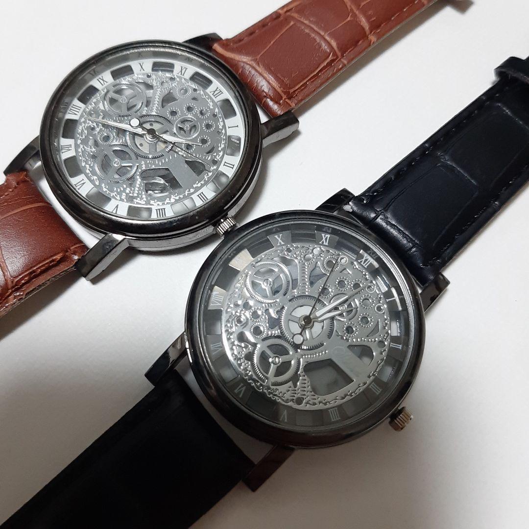 - 新品 激渋 腕時計 スケルトン 黒と茶色のセット 102