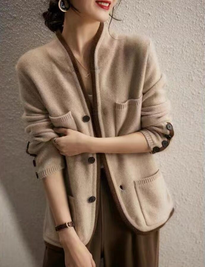 - 秋冬新作 ニットカーディガン 上質 オシャレ 大人 ニットセーター カシミヤ混 柔らかい 暖かい 20304050代 ショートコート 杏色