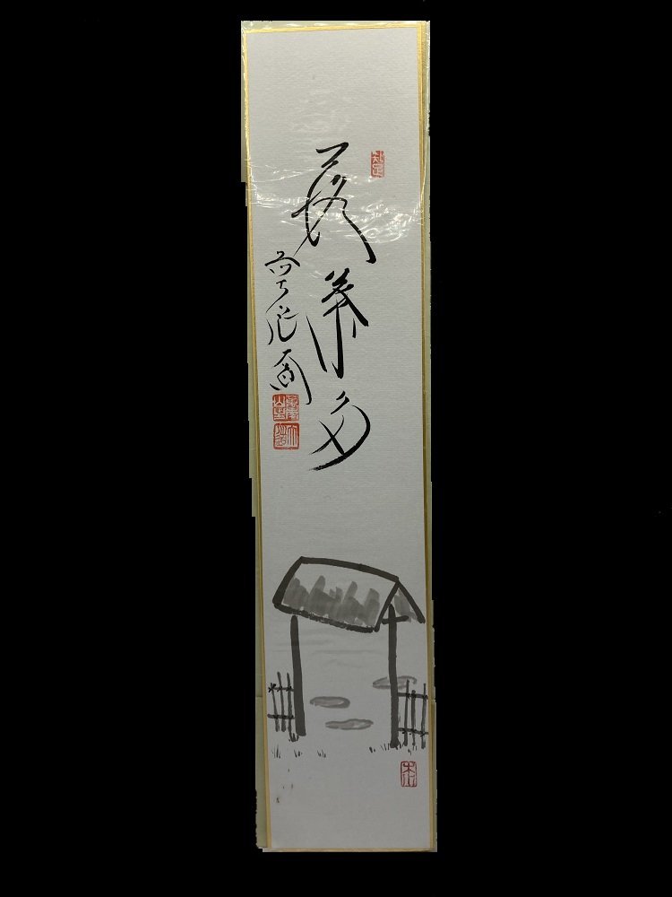 - 茶道具 短冊 画賛 【画 門 /賛 落葉多】 西垣大道筆