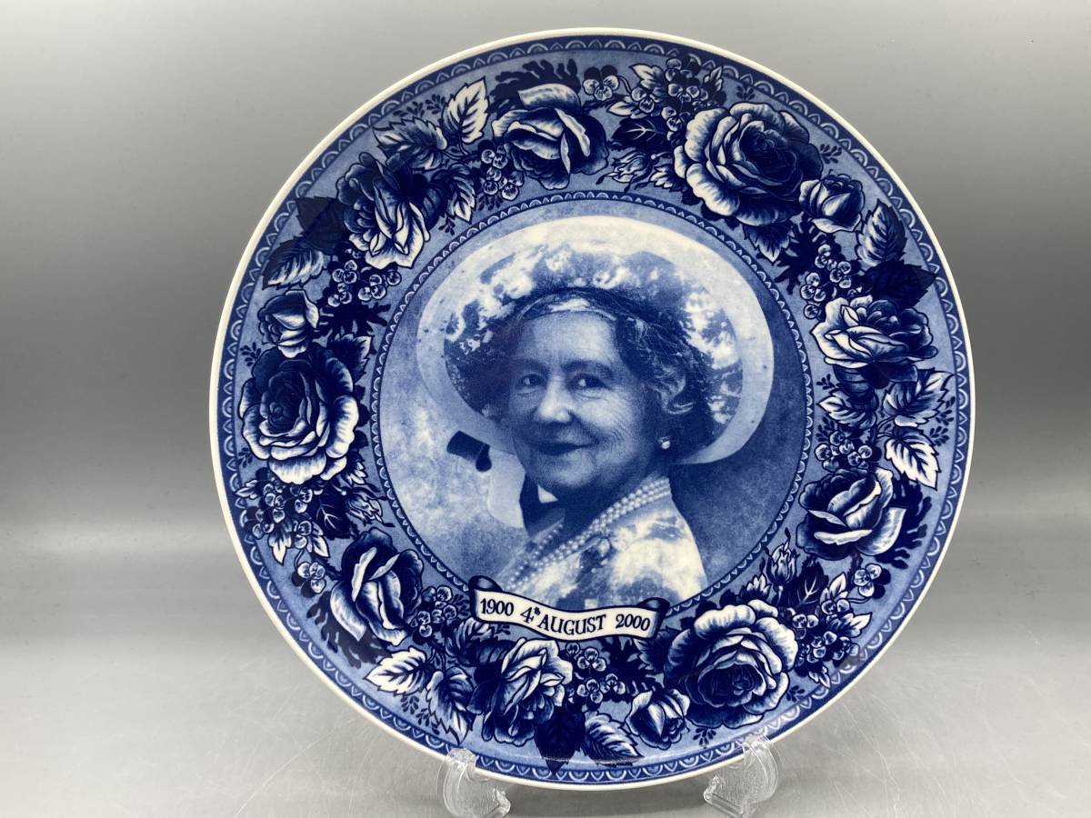 - 英国 ウェッジウッド クイーンズウェア 100周年記念 クイーンマザー エリザベス女王 の 母 皿 飾り皿 ロイヤルファミリー (1234)