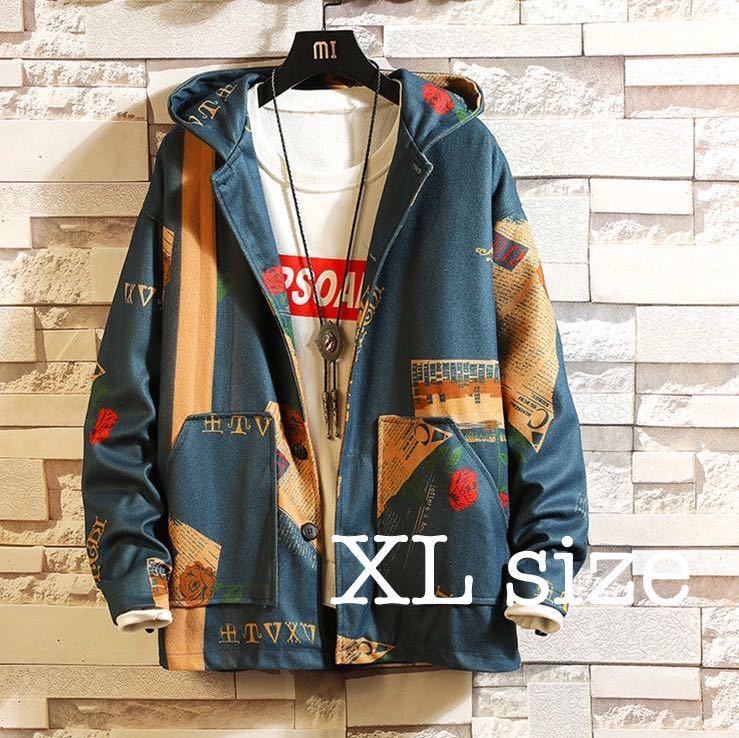 - ビッグシルエット ジャケット パーカー アウター ユニセックス ブルー 青 XL
