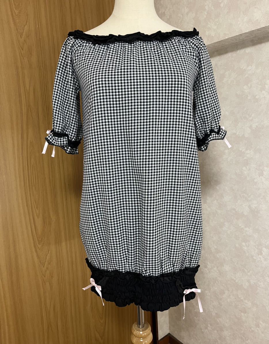 - GJ グラマラスジェーン ギンガムチェック フリル オフショルチュニックワンピース リボン付き 姫 ギャル