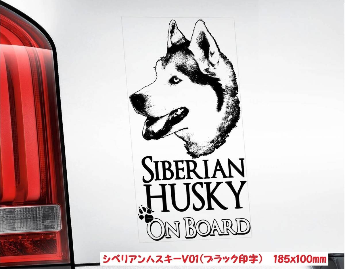- ◆送料無料【シベリアン・ハスキー ①-BLK】外張り ブラック印字 カーステッカー ホワイトボディ に 185×100mm シール 犬 D1@4057