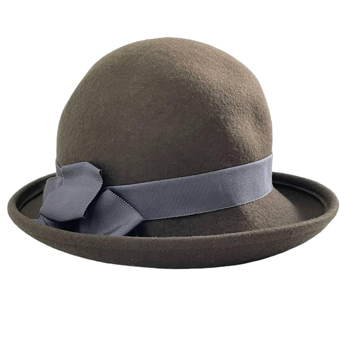 - ☆AURORA オーロラ 日本製 毛100% ウールフェルトハット ボーラーハット 山高帽 帽子 リボン装飾 ブラウン 茶色【送料一律/同梱可能】棚