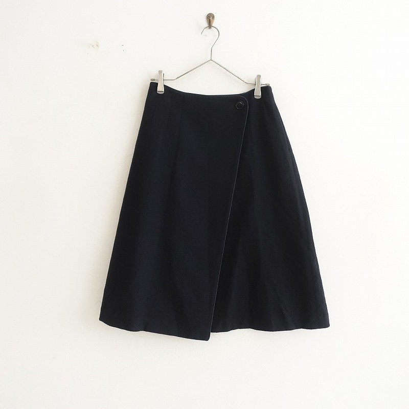 - //サリースコット Sally Scott *ウールラップ風スカート*11毛厚手巻きパイピング裏地付きスリットネイビー(sk27-2311-77)【62K32】