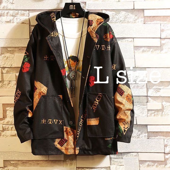 - ビッグシルエット ジャケット パーカー アウター ユニセックス ブラック 黒 L