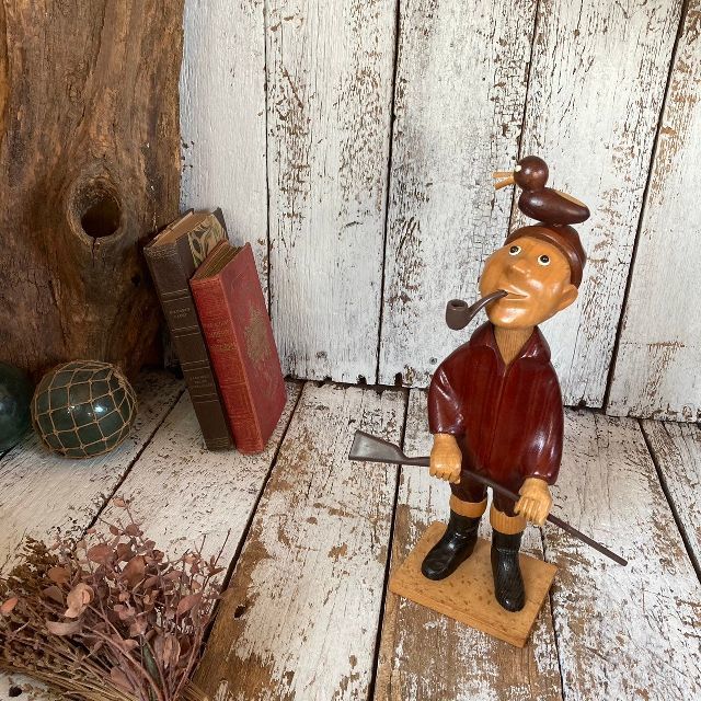 - ~80s イタリア ヴィンテージ ROMER ロメール 木彫り 人形 ハンター 猟師 木目 木製 置物 ハンドメイド 彫刻 伊 ビンテージ アンティーク