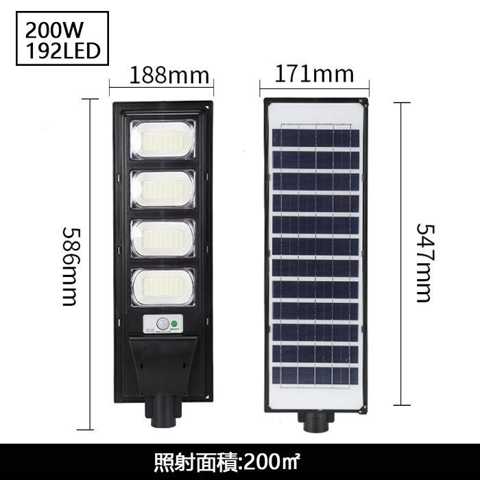 - 200W 人感センサーライト 1個 192LED ソーラーライト 驚きの照射力 LED超高輝度 防水 防犯ライト 自動点灯 屋外照明