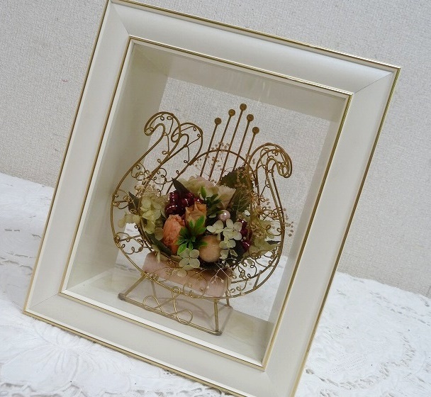 > (☆BM)ドライフラワー オブジェ ケース入り フレーム ピンク 置物 花 ローズ 紫陽花 インテリア小物 ロマンティック エレガント