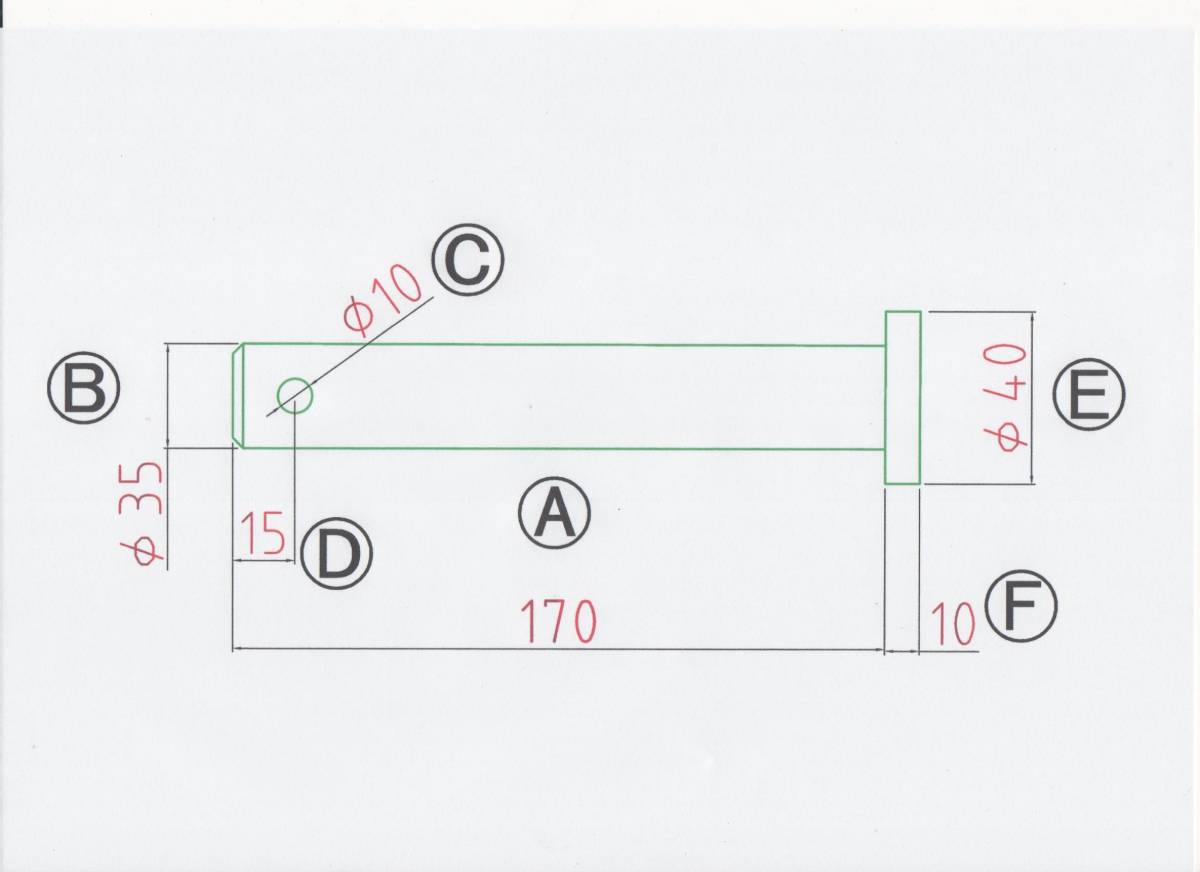 - NO 1628 Φ35用 ツバ下170mm バケットピン 1本