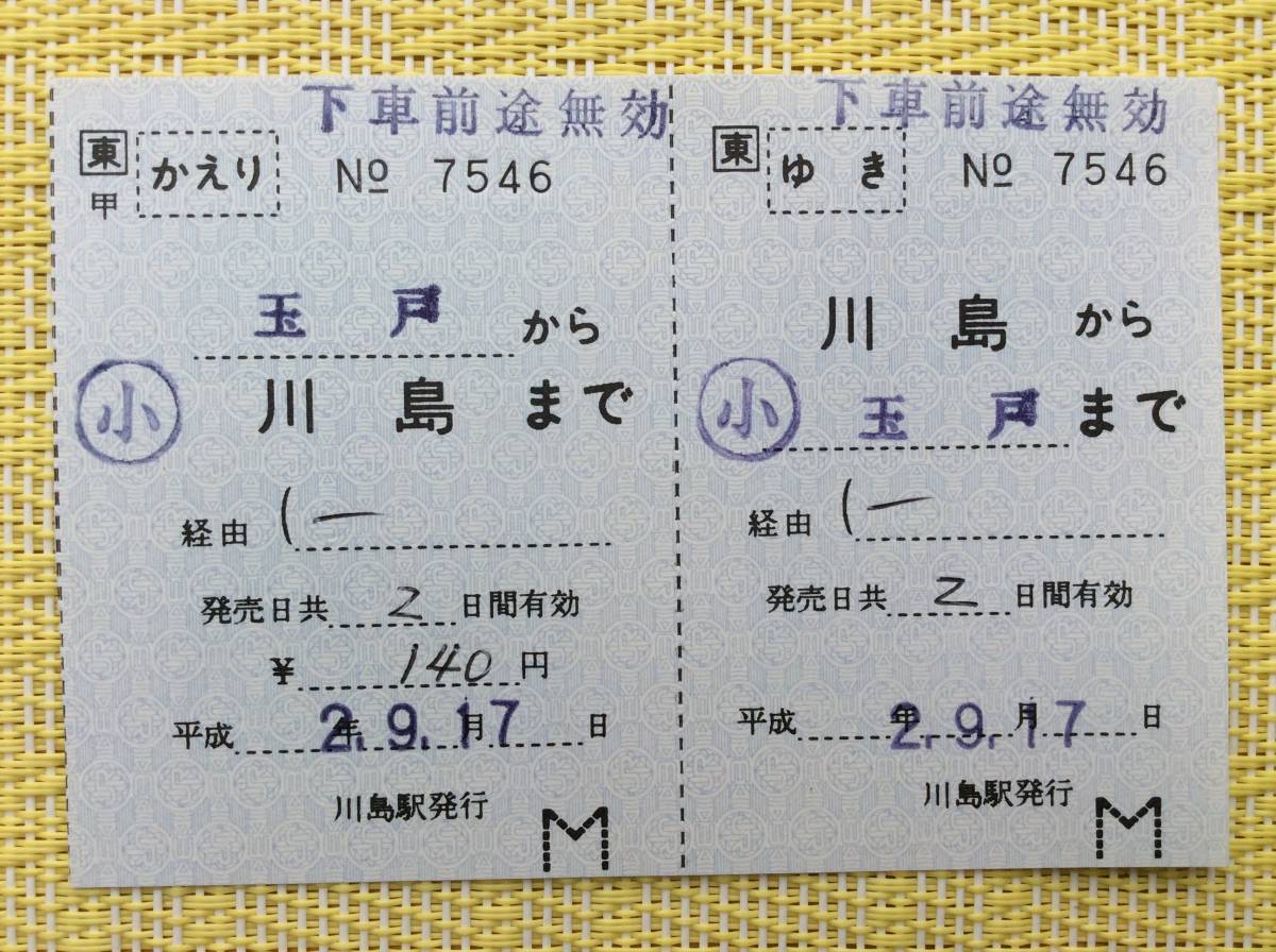 - JR東 水戸線 補充往復乗車券 川島ー玉戸 平成2年