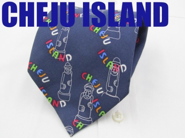 - OB 377 済州島 CHEJU ISLAND ネクタイ 青系 動物柄 ワンポイント ブランドロゴ プリント