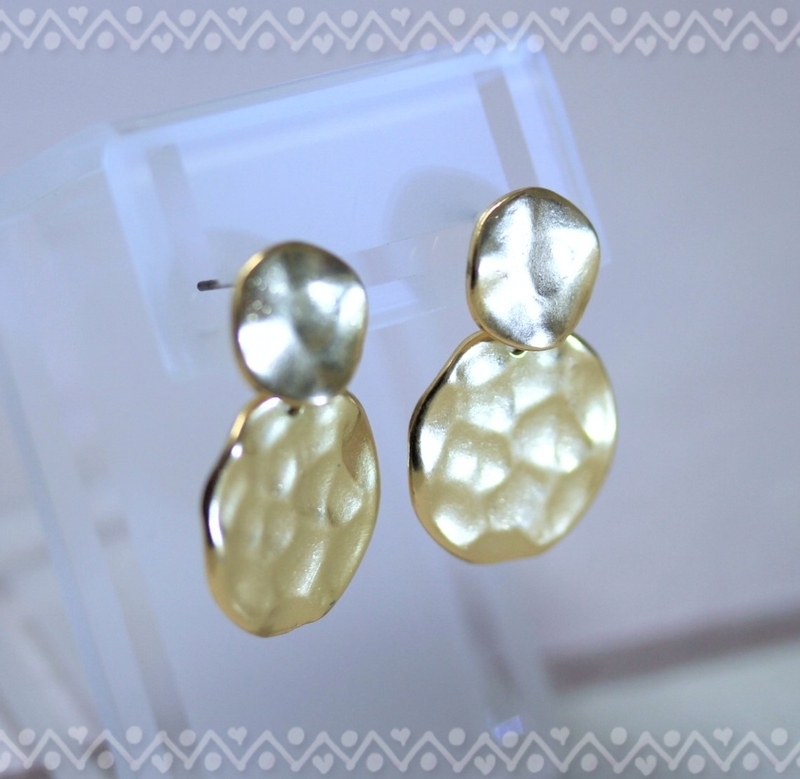 - EP7429/ハンマー仕上げ ゴールドメタル 金色 ラウンドディスクピアス 人気の揺れるピアス