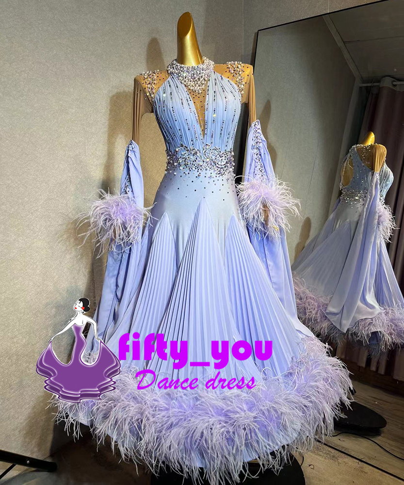 - 新品fifty_you レディース社交ダンスドレス モダン競技会用ワルツドレス キラキラストーン飾り サイズオーダー 裾ファー飾り 高級品