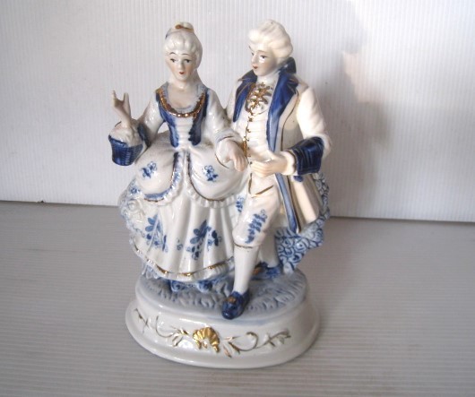 - 陶器の人形 西洋 男性&女性 ドレス 舞踏会 社交界 サイズ:約16×15×H25㎝/21N11.16-25