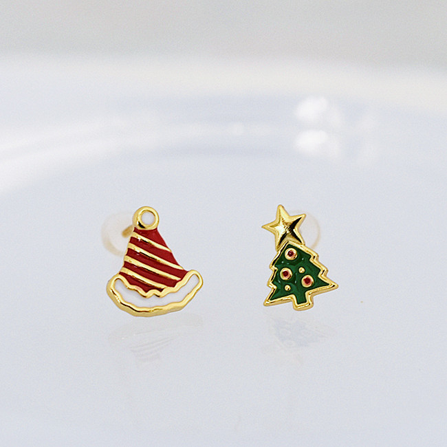 - クリスマス ツリー 帽子 シルバー925 ゴールド色 ピアス