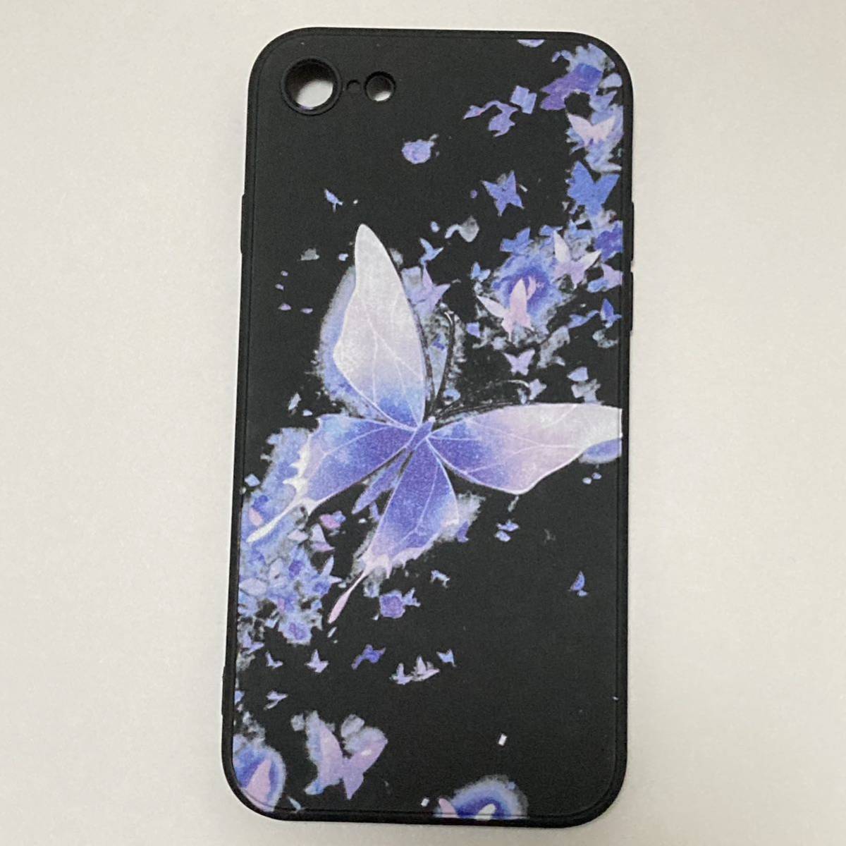 - 新品 iphoneケース 7/8/SE2.3用 きれいな蝶々のスマホケース 幻想的 ブルー ブラック 夢の世界 幻夢 紫 シリコンケース 蝶