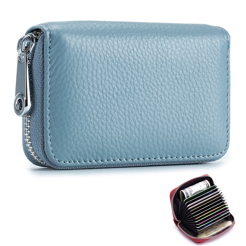 - カードケース カード入れ ファスナー メンズ レディース スリム 薄 コンパクト スキミング防止 本革 スカイブルー K-08-08