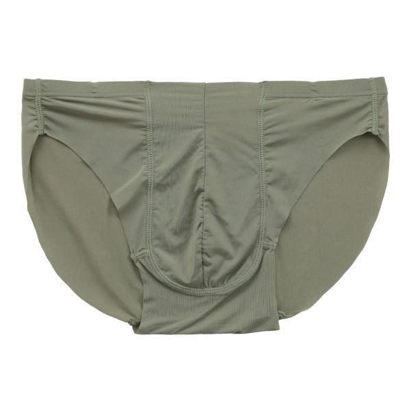 - 『送料無料』★つるつる 光沢★メンズ ビキニ ヘムショーツ★前閉じ★切りっぱなし★カップ部2重★伸縮性★無地★カーキ★Lサイズ★