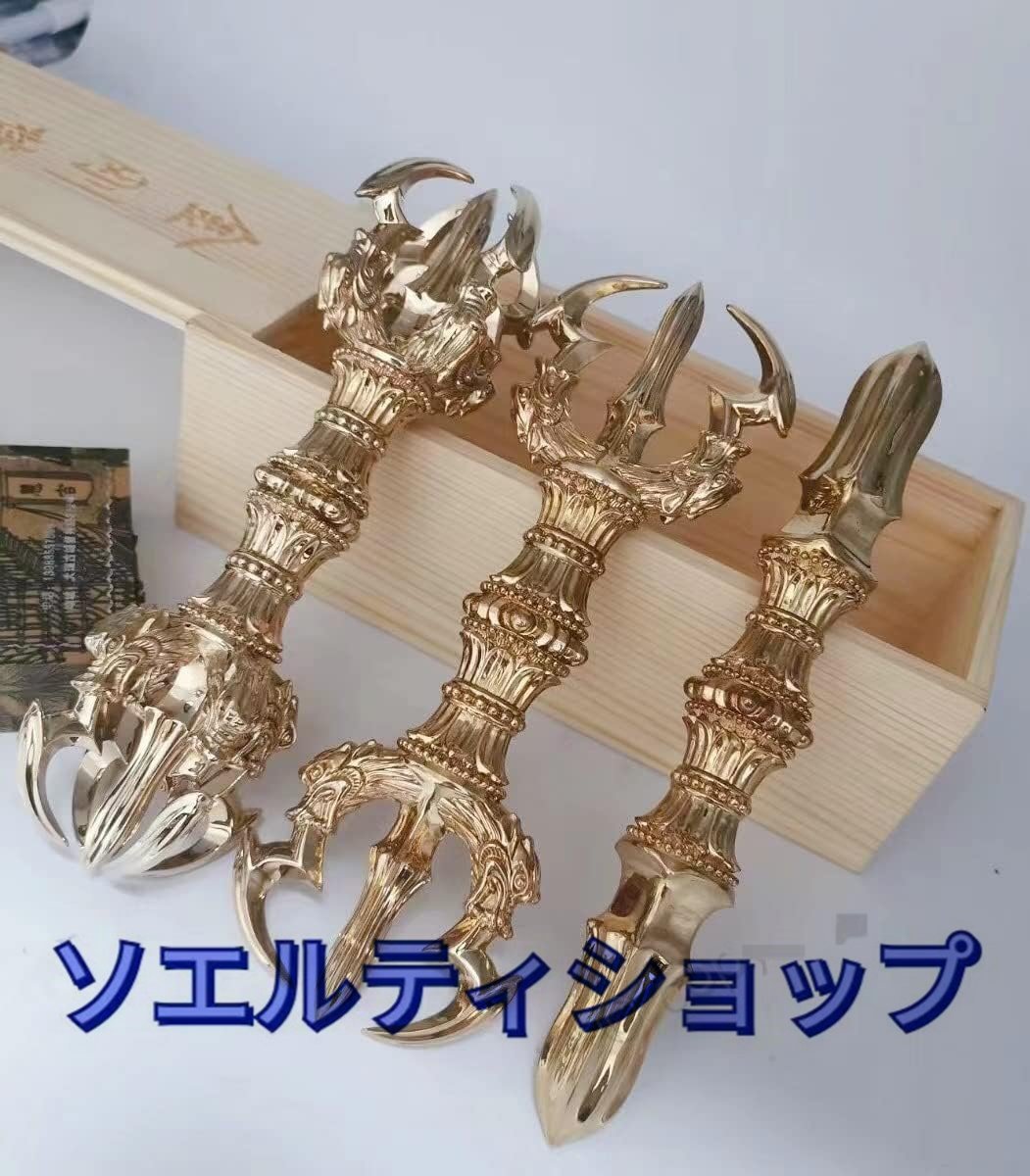 - 密教法具 独鈷杵・三鈷杵・五鈷杵 三点セット 真鍮仏具加持祈祷 護摩 寺院 大々型 長さ22CM