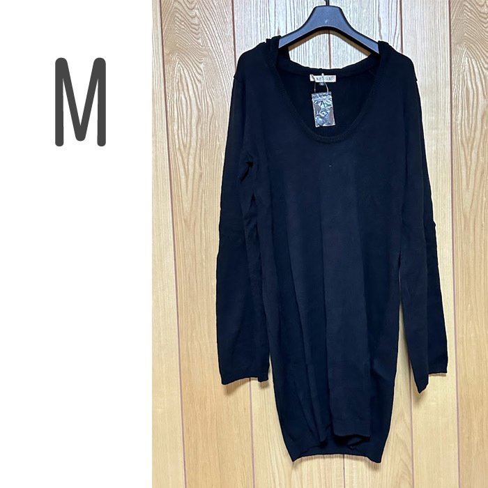- ●新品/フード付き/ニット/チュニック/M/黒系/レディース●f9964