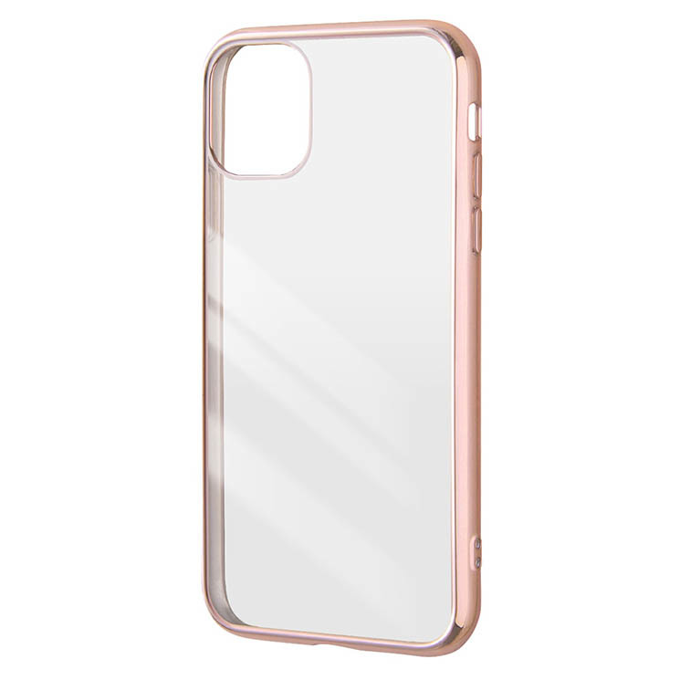- iPhone11 iPhoneXR ケース クリア ピンク メタリック フレーム 透明 衝撃吸収 シンプル スマホ カバー ソフト TPU