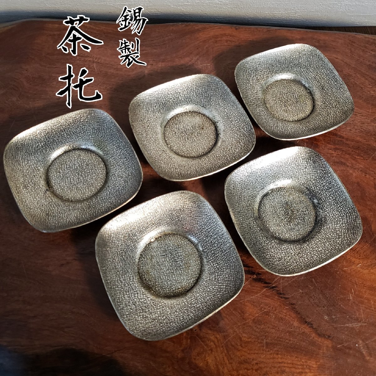 - 錫製 茶托 5客 茶たく 金属工芸 ※歪みや変色有り 錫製品 茶道具 煎茶道具 お茶 アンティーク 古い 年代物 時代物【60s2077】
