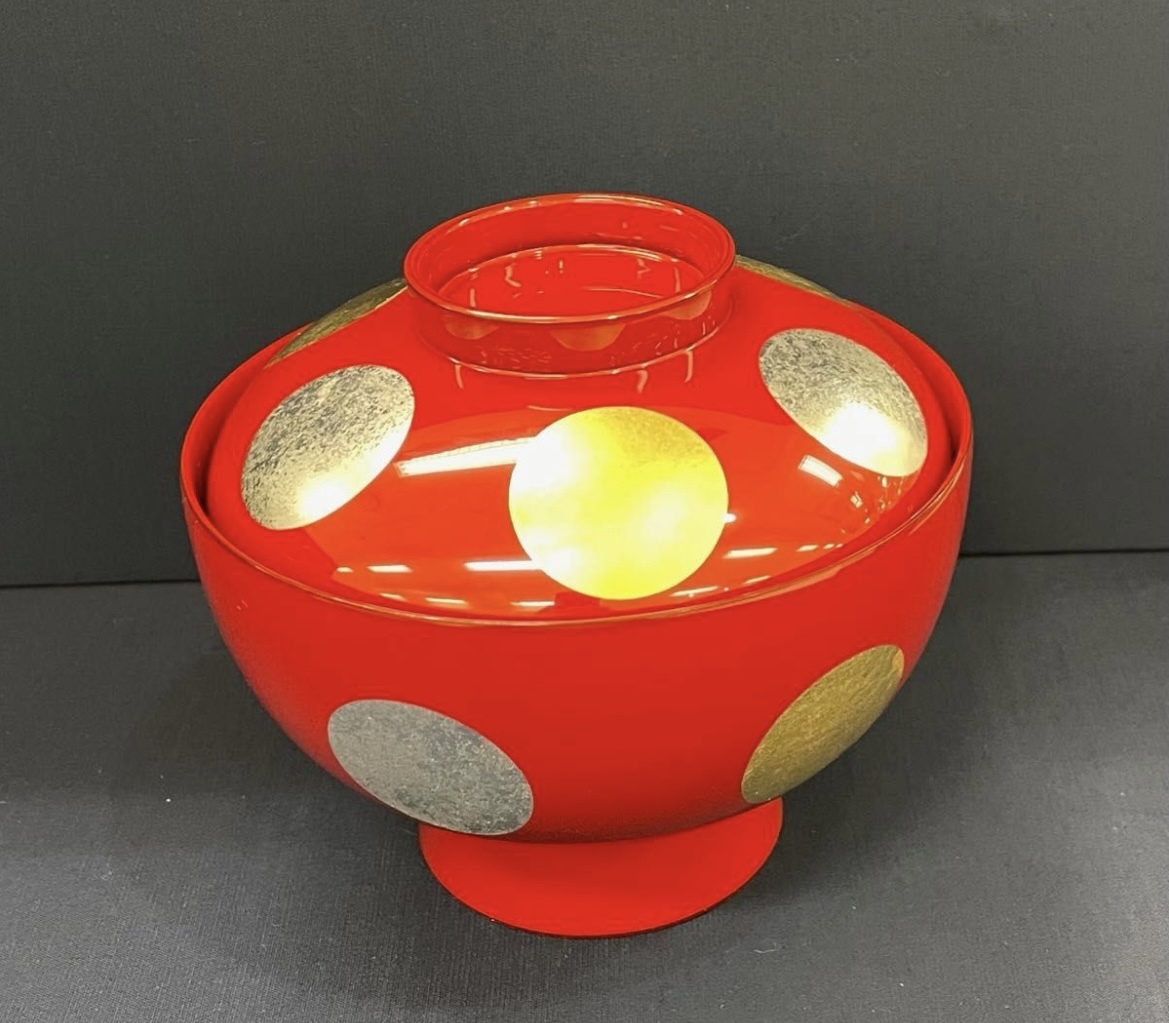 - 越前漆器■越前塗 雑煮椀 煮物椀 総朱 日月箔【1客】★国産★本漆手塗り【新品】