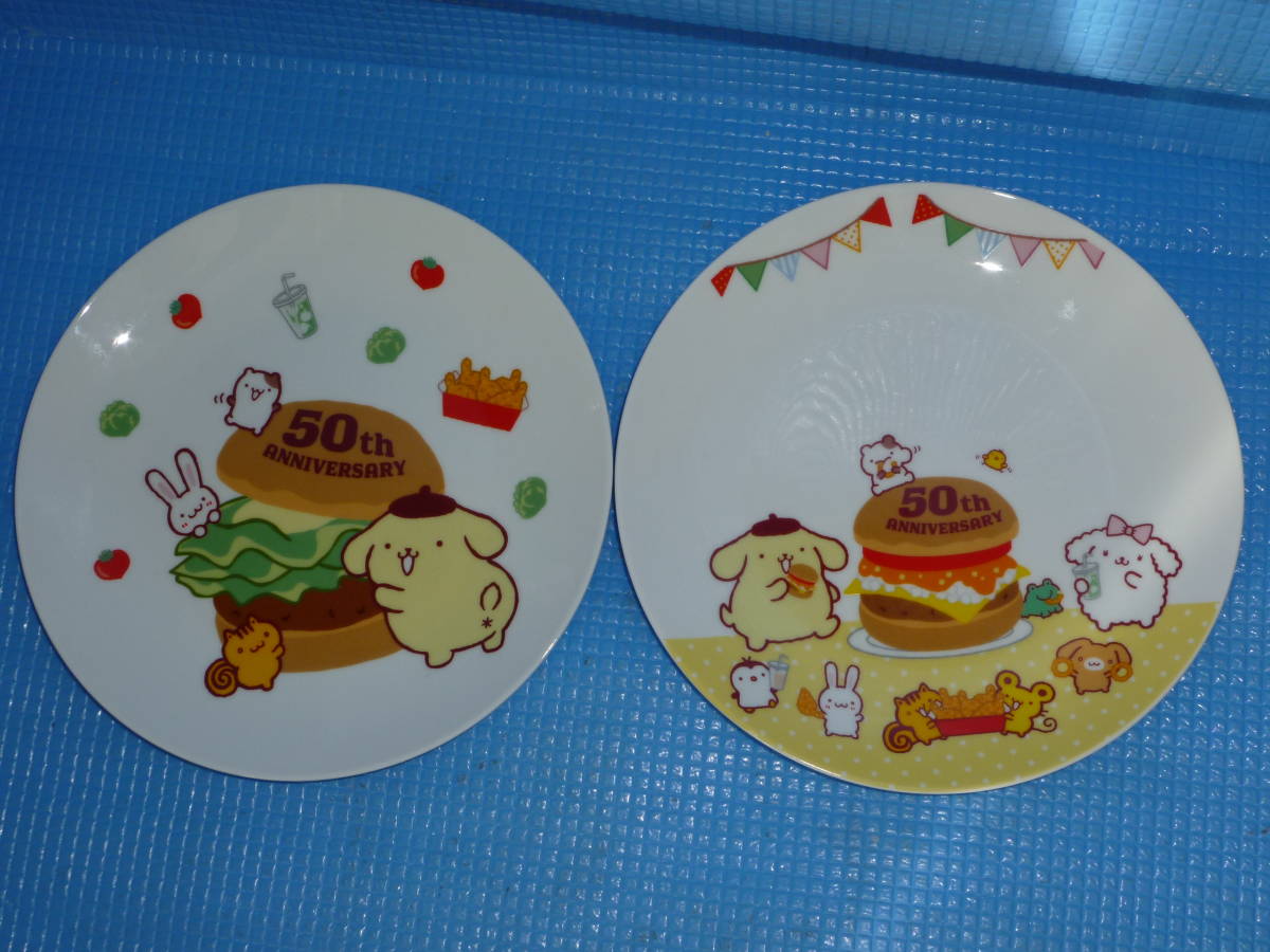 - E★未使用・非売品★モスバーガー50周年記念 ポムポムプリン 陶器限定プレート×2枚