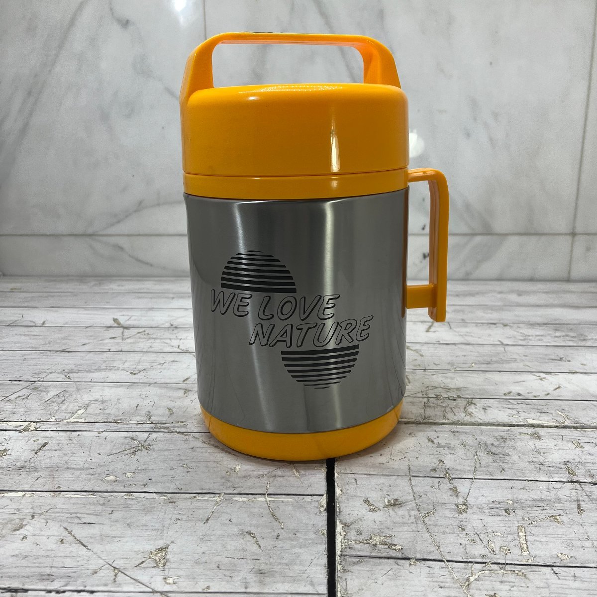 > =M= ステンレス魔法瓶 LOVEPOT イエロー ステンレス 魔法瓶 ポット レジャー 昭和レトロ アウトドア 水筒 =B-231224