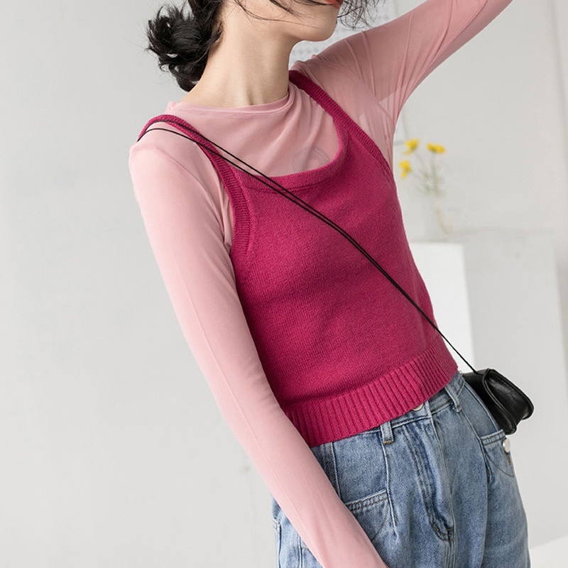 - 送料無料★新品 丸首 シアーカットソー コーデ万能 シースルーインナー シアー 透け感★ピンク
