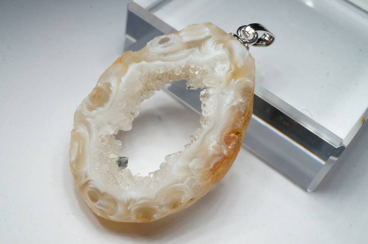- 30年前の希少在庫!アゲートジオード・ドーム水晶、石英クラスターが神秘的(メノウ・瑪瑙)原石ペンダント5.5g