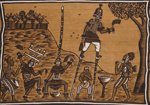 - アフリカ マリ ボゴランフィニ 絵布 Lサイズ No.11 泥染め布 コットン 織布 飾り布 タペストリー ドゴン族