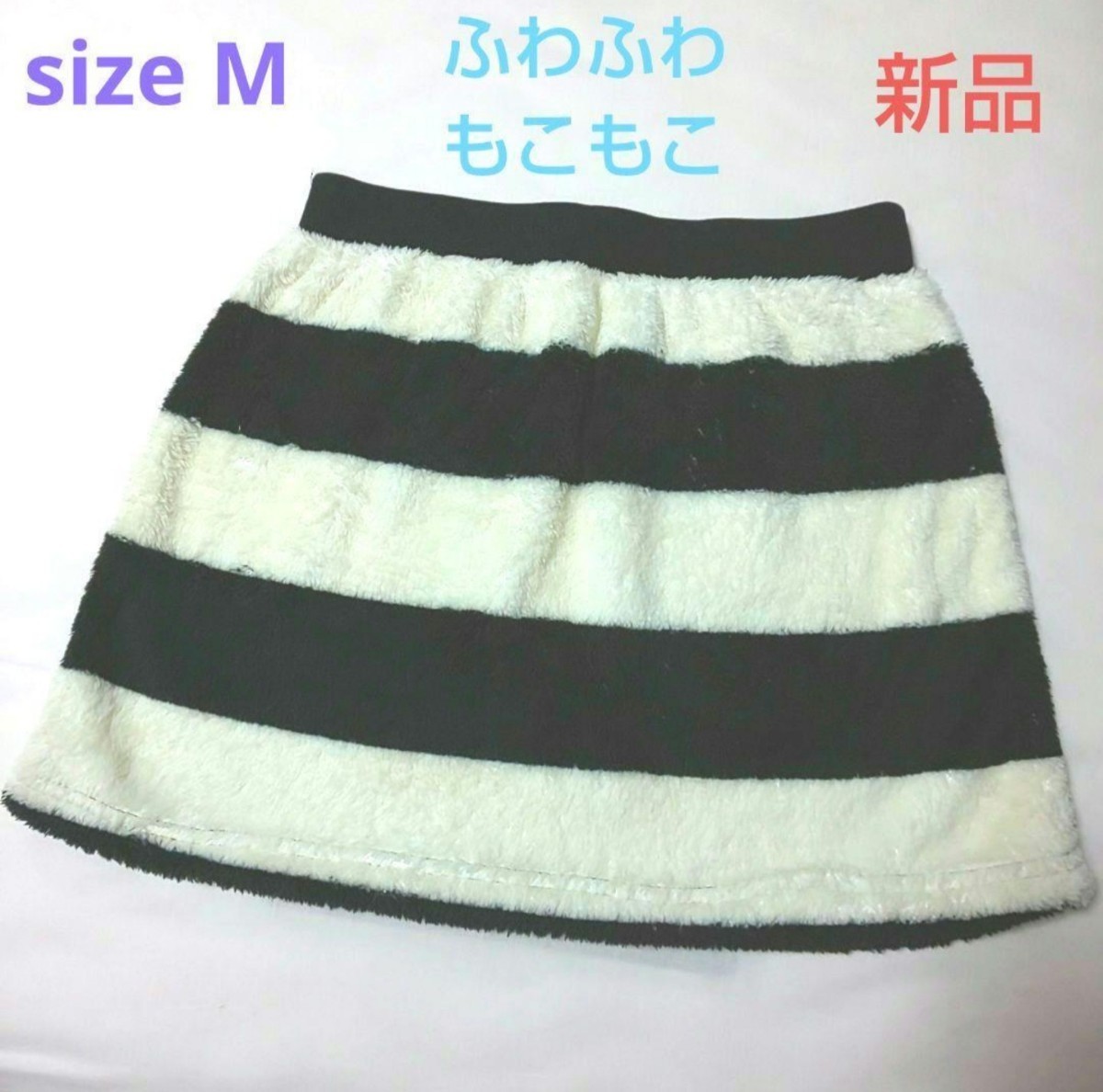 - ふわふわ モコモコ ストライプ ミニスカート Msize【新品】