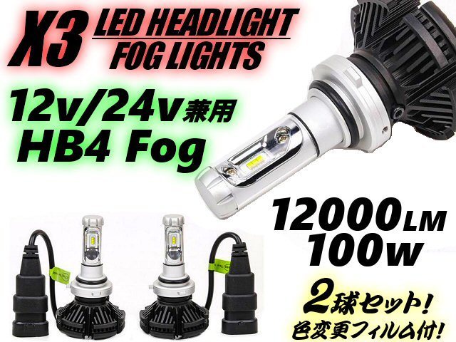 > 車検対応 12V 24V X3 大光量 計12000LM 100W ショート バルブ HB4 LED フォグ ヘッドライト 2球 左右 白 ホワイト 3000k 6000k 8000k E