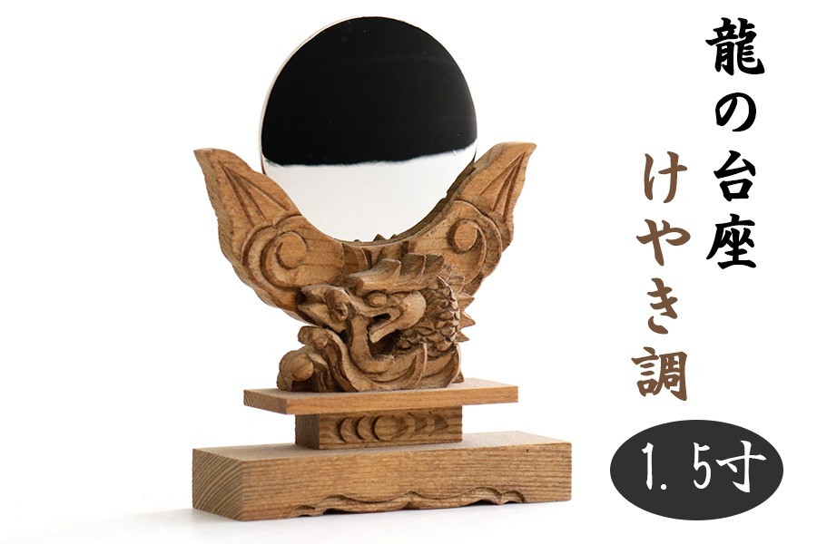 > 小型 龍彫り 神鏡 1.5寸 ■ 手塗り 家具調 けやき調 竜彫 ■ モダン 胡桃 神棚 神具 極上 彫り 依代 ご神体に 龍神 守護 家具調モダン神棚
