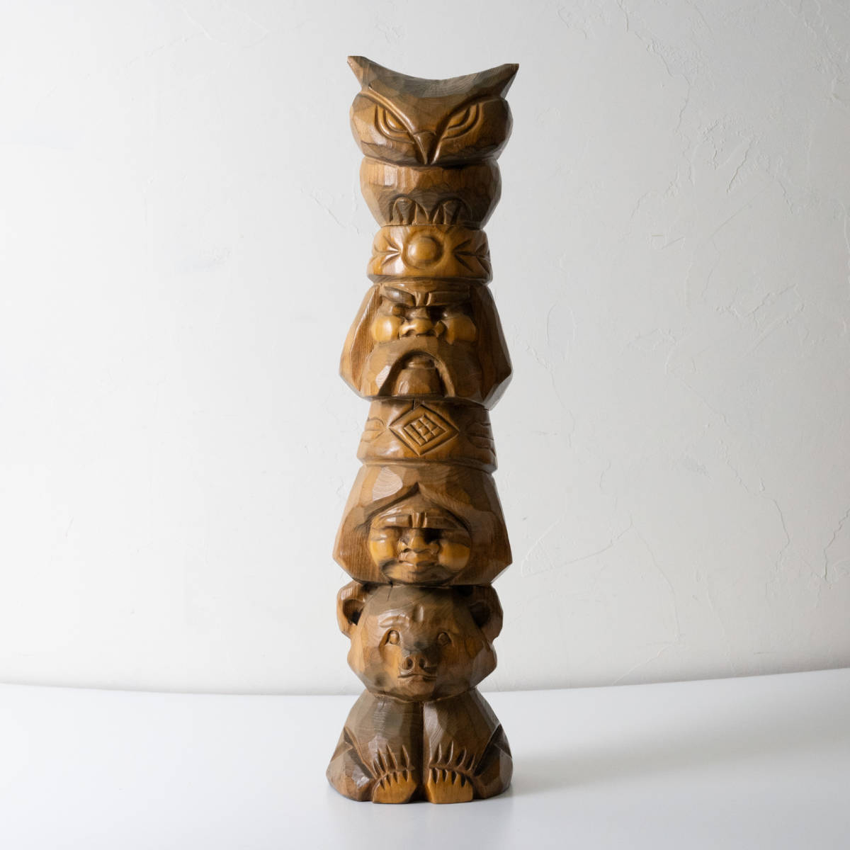 > アイヌ エカシ 木彫り熊 トーテンポール 高さ55.5cm トーテムポール ニポポ 木彫り 木製彫刻 置物 オブジェ 飾り 古道具 民芸 北海道 人形