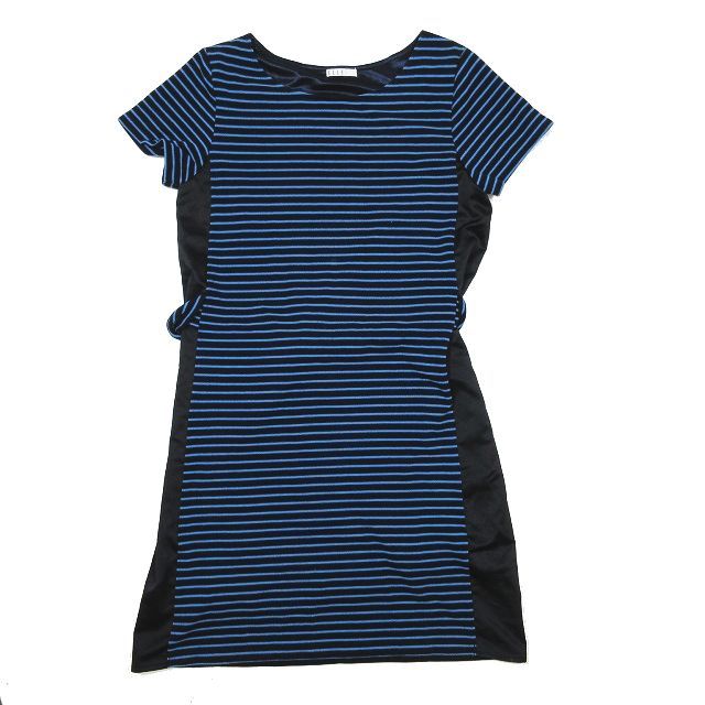 > エル ELLE ボーダー切替 サッシュワンピース タイト ストレート ひざ丈 半袖 ウエストベルト ブルー ブラック 40 レディース