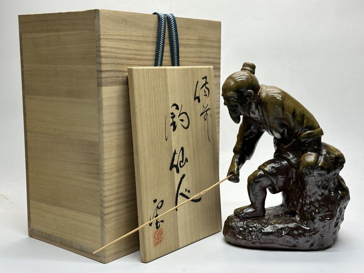 - 木村陶雲 備前 釣仙人 置物 細工物 オブジェ 共箱