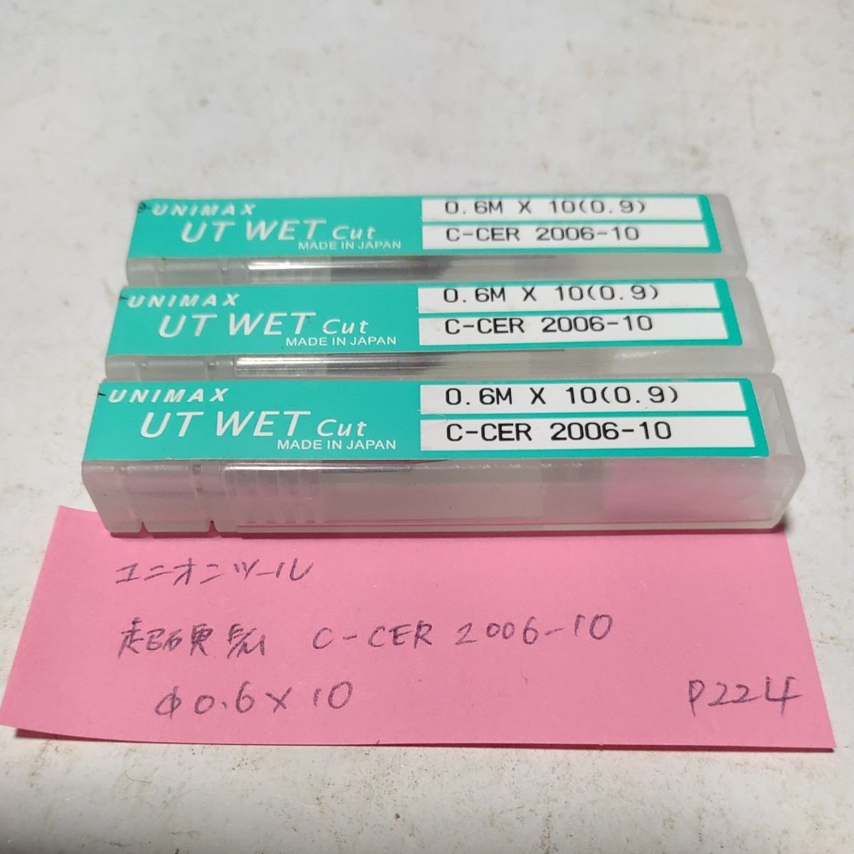 > P224 未使用 ユニオンツール 超硬エンドミル 0.6 2枚刃 C-CER 2006-10 Φ0.6×10 3本セット