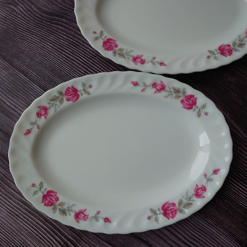 - 台湾レトロ◆大同◆オーバルプレート 楕円形皿 ピンク バラ柄 フリル◆台湾食器◆ヴィンテージ dce511005