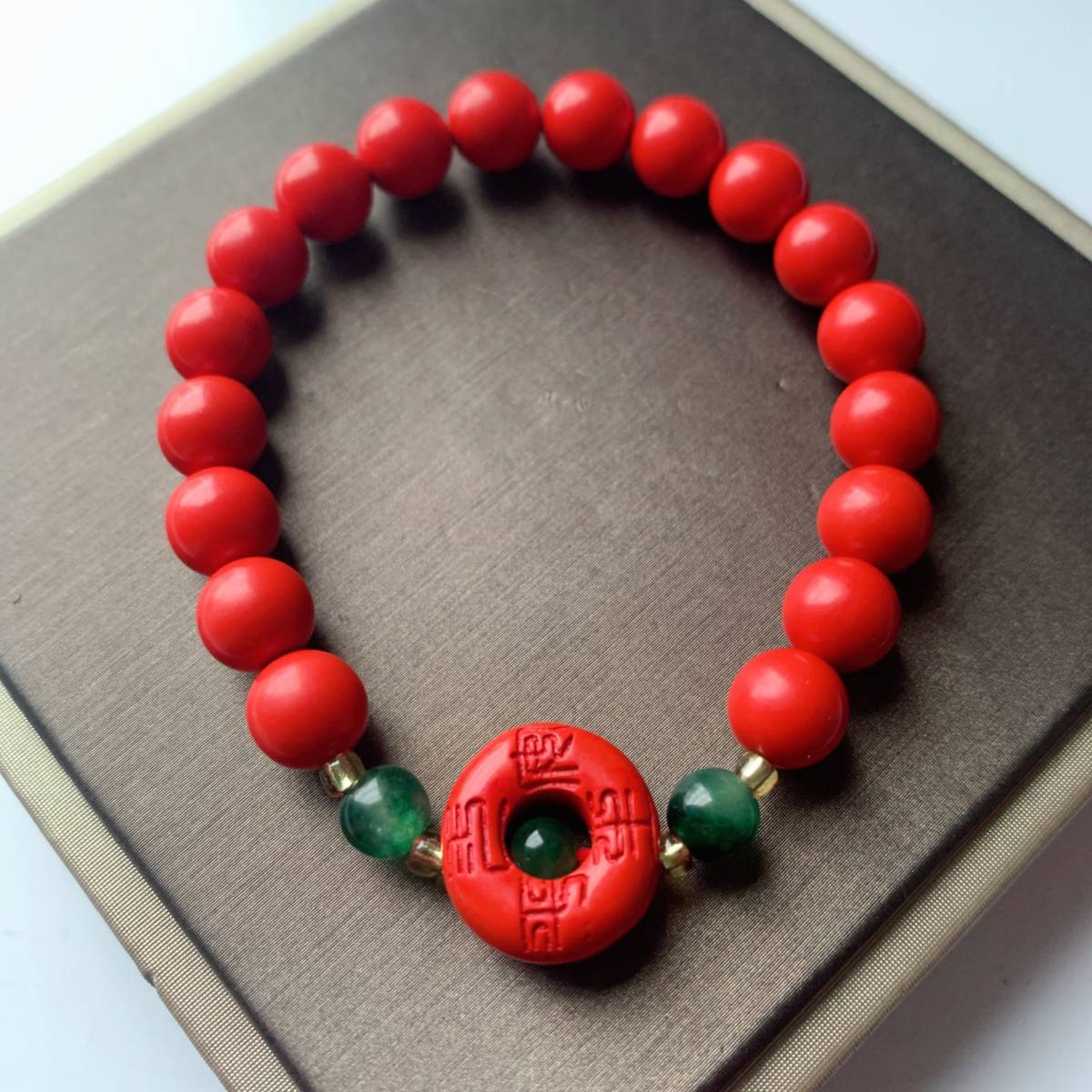 > ◇シナバー(辰砂)+カルセドニー(玉髄)3粒◇ブレスレット◇パワーストーン◇巾着袋付き◇プレゼント027B1313