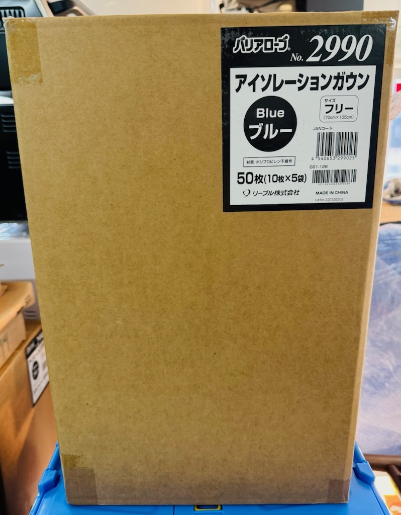 > リーブル 医療用ディスポーザルガウン 衛生エプロン 衛生ガウン バリアローブ No.2990 アイソレーションガウン(50枚入)ブルー 未開封品 3