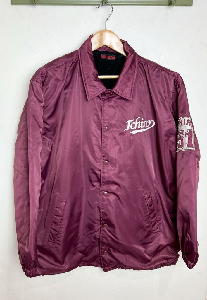 > NISSAN ニッサン イチロー コーチジャケット スタジアムジャンパー 大きめ ◆ ナイロン100 レッド系 ロゴ刺繍 古着 メンズ
