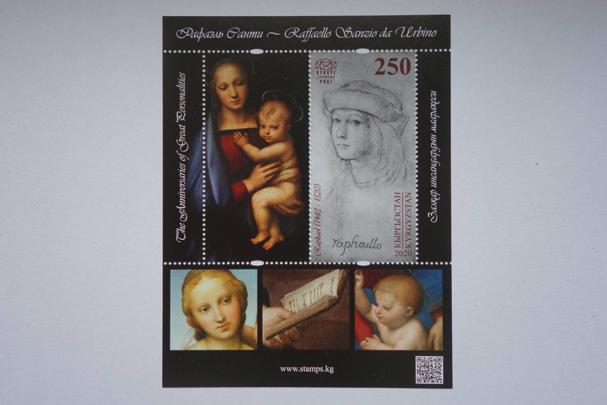 - 外国切手:キルギスタン切手 「ラファエロ没後500年」小型シート 未使用