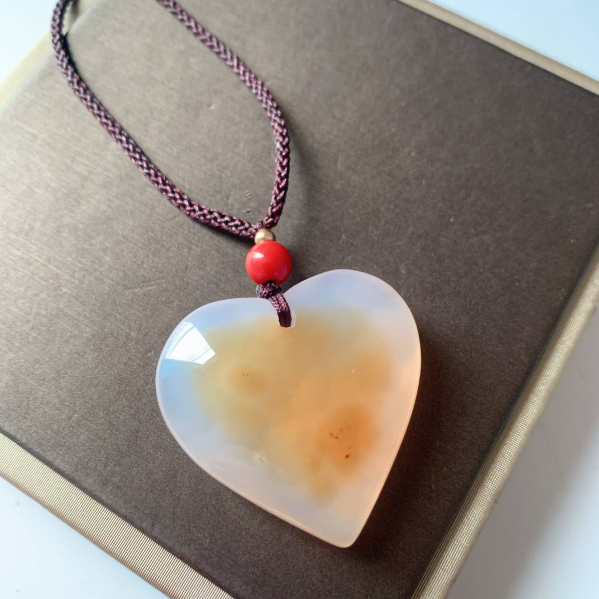 > ◇瑪瑙◇メノウ◇アゲート◇ネックレス◇ペンダント◇ハート形◇天然石◇パワーストーン◇巾着袋付き◇プレゼントにも 027P1814